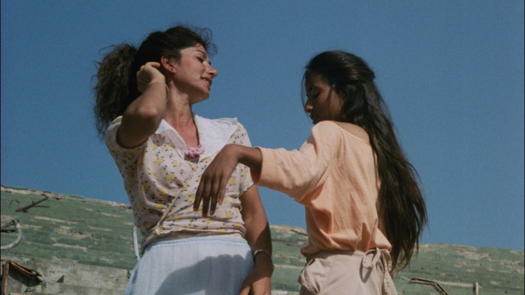 It is difficult to put into words what so grabs me about this film. It’s rather unique in that regard. The imagery is the most immediately striking element, but the story itself is quite moving. Young girls who are forced to grow up before their childhood ends due to war and occupation. Older and younger generations who see themselves in each other. For better or worse, war has equalized them. Life goes on around the rubble, and shelled-out buildings become the stage for fantasy. There’s a shared need for escape – through the cinema, through poetry, or through one’s own artistic existence. Life during wartime is not and cannot only be about war.